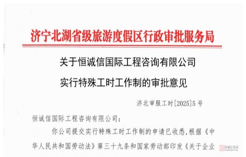 關(guān)于恒誠信國際工程咨詢有限公司實行特殊工時工作制審批意見的公示